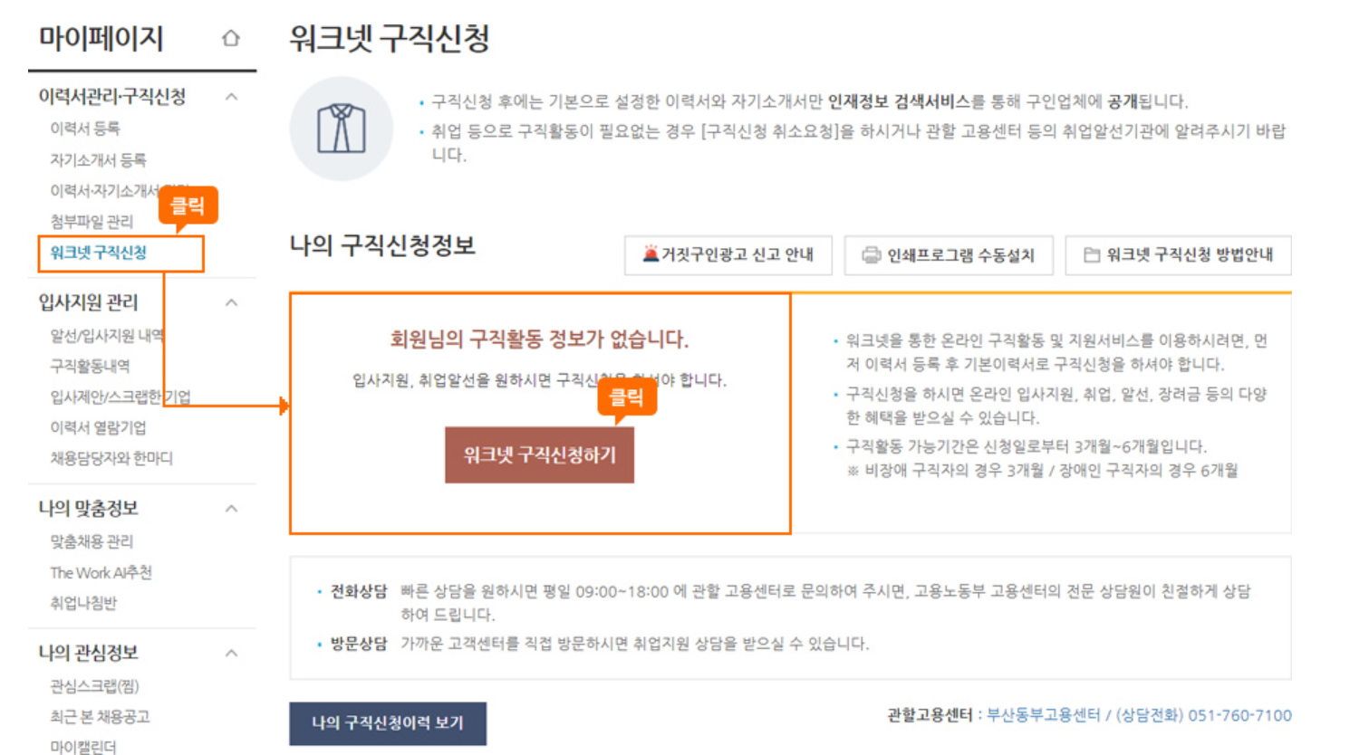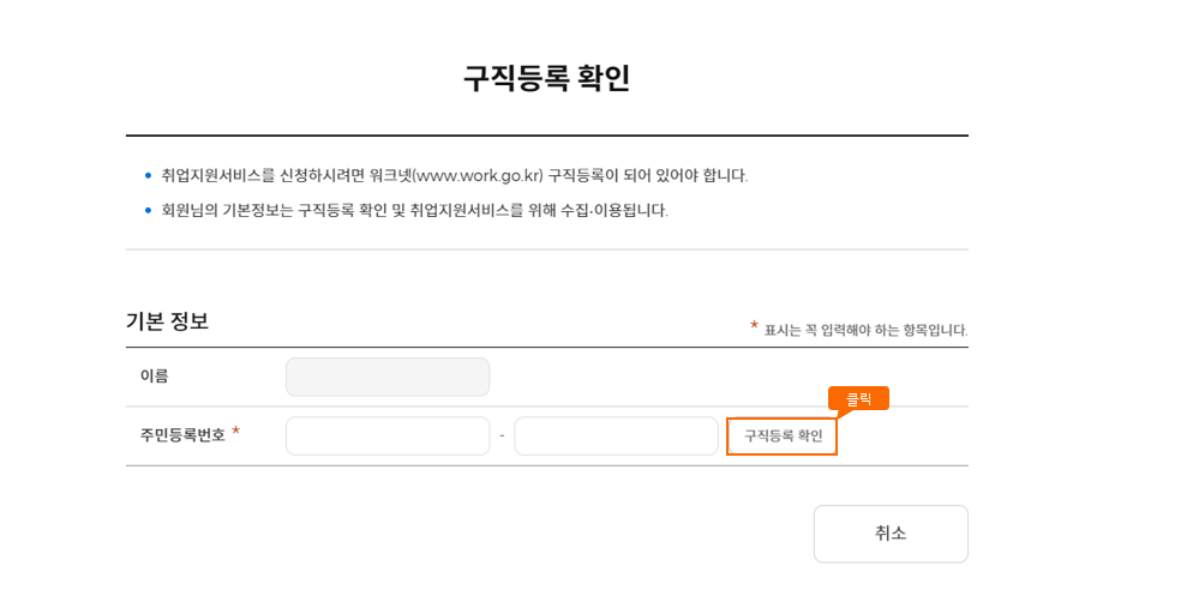 (구직신청 이전인 경우 해당합니다. 구직신청이 이미 되신 분들은 이 절차를 생략하십니다.)