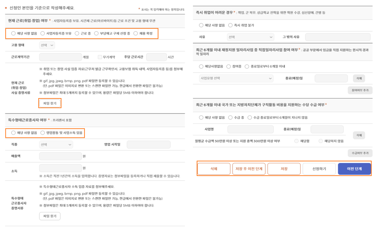 - 참여 신청서 작성 방법[재산·취업경험·근로정보 등록]