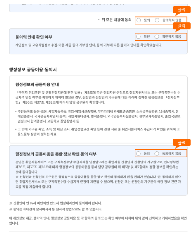 - STEP2에서 I유형(구직촉진수당 수급자격)으로 신청하더라도 II유형 자격만 인정이 가능할 경우 II 유형 서비스만 받을지 여부에 대해 [동의함]을 선택하시면 II 유형(취업지원 서비스) 수급자로 인정받고 취업지원 서비스를 받으실 수 있습니다.