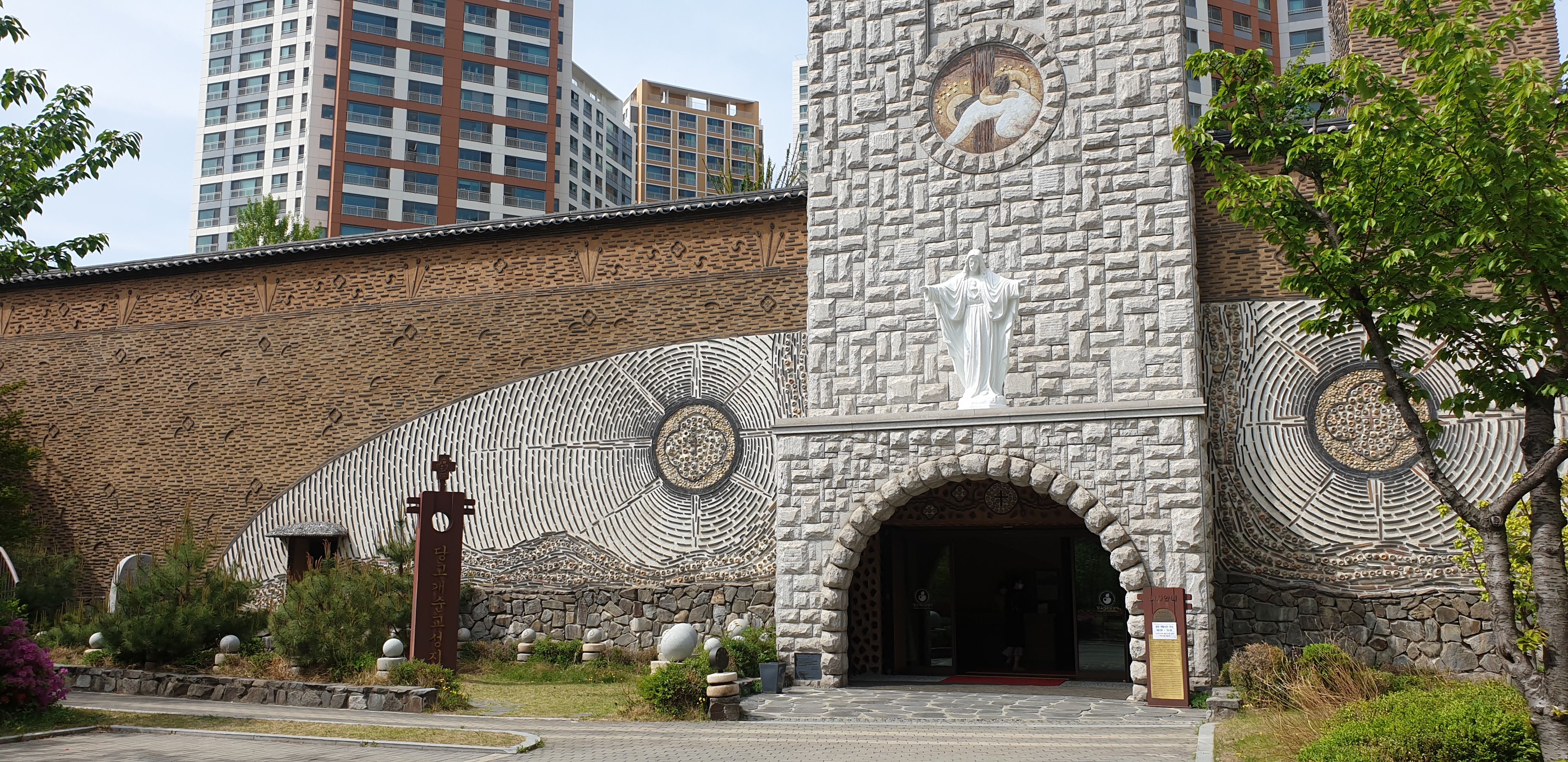 당고개 순교성지 성당 모습입니다. 작고 아름다움 성당입니다. 성당 앞에는 묵주기도 돌이 있습니다.