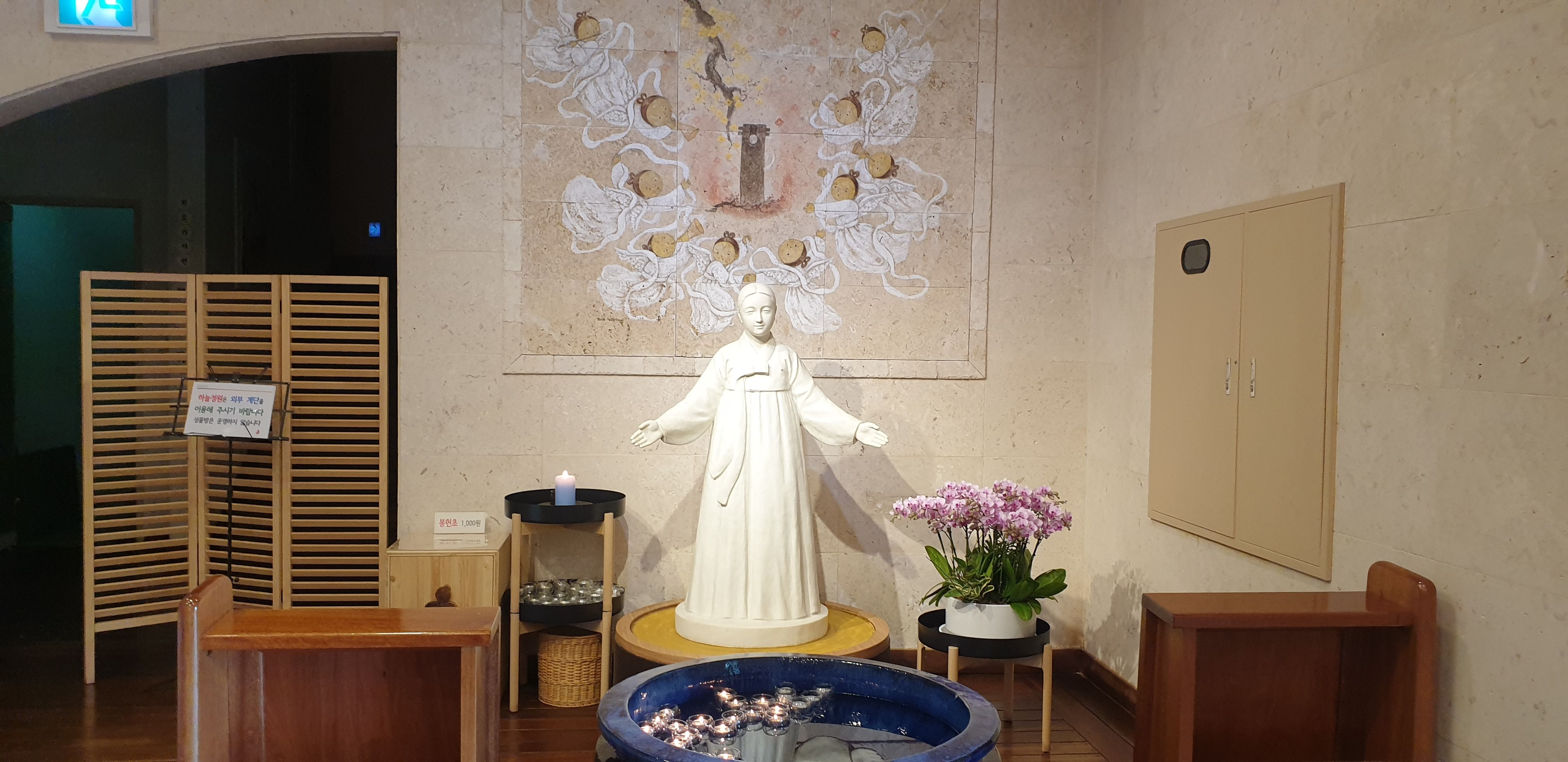 성모상 앞에 초를 띄우고 묵상이나 기도를 할 수 있는 곳입니다.