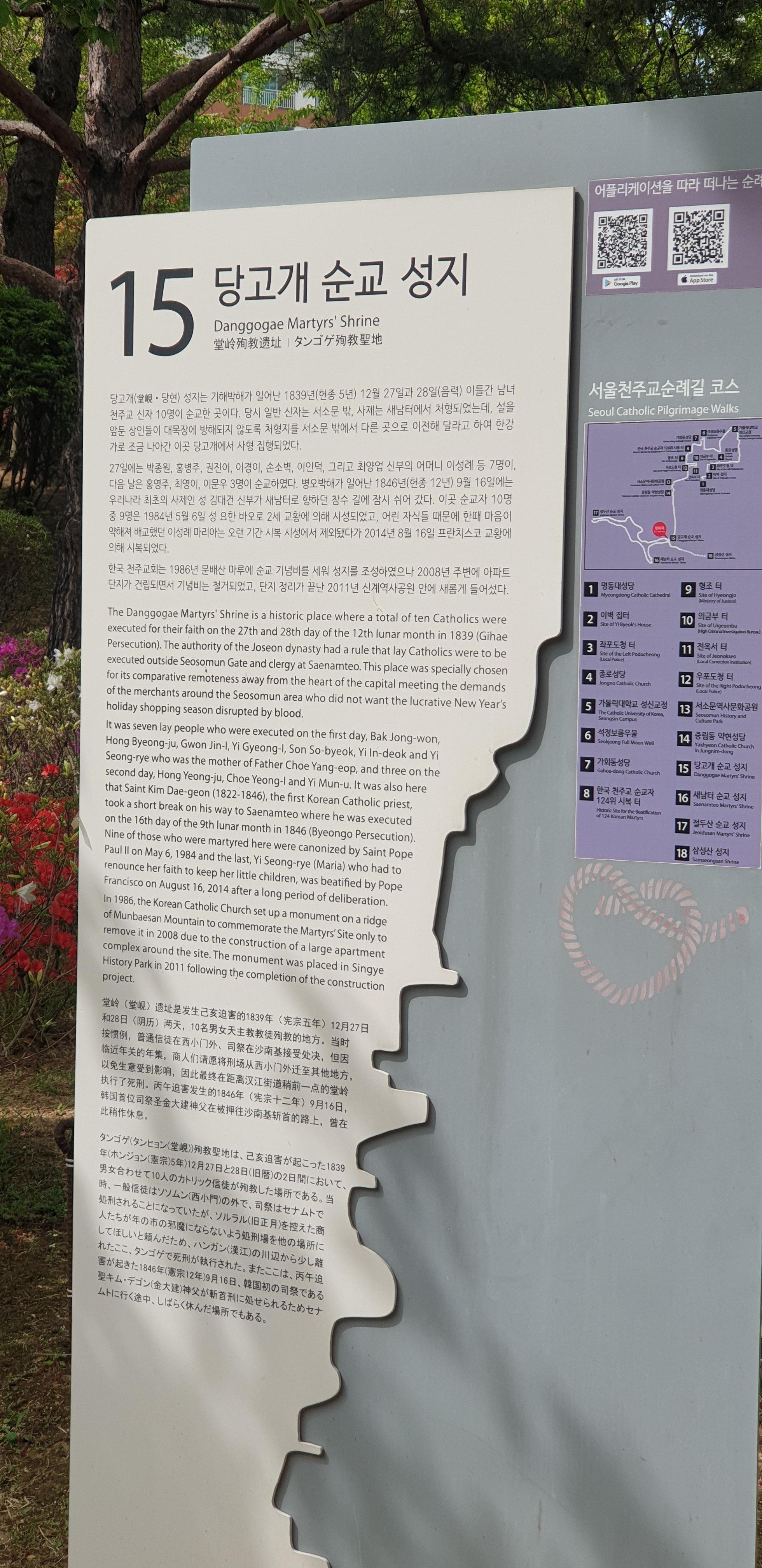 당고개 성지가 "천주교 서울 순례길 교황청 승인 국제 순례지로 선포"되었다고 합니다. 1번 명동성당부터 ~18번 삼성산 성지까지 성지순례를 해보시는 것도 좋을 것 같습니다.