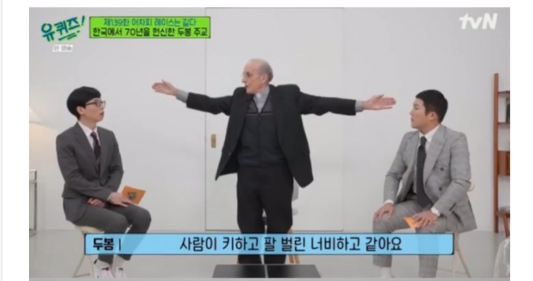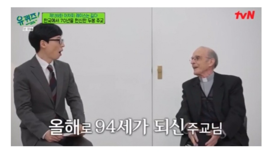 • 유재석 : 한국에 처음 와서 보좌신부 시절에 겨울에도 난롯불을 피우지 않고 양말도 신지 않고 절약을 하실 정도로...