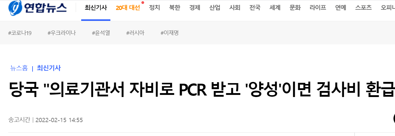 의료기관에서 PCR 검사의 결과가 양성이 나오면 자비로 냈던 검사비용을 환급받을 수 있다고 합니다. (아래 기사 참조)