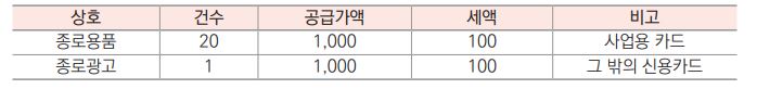 - (신용카드) 공급가액 20,000천 원, 부가가치세 2,000천 원