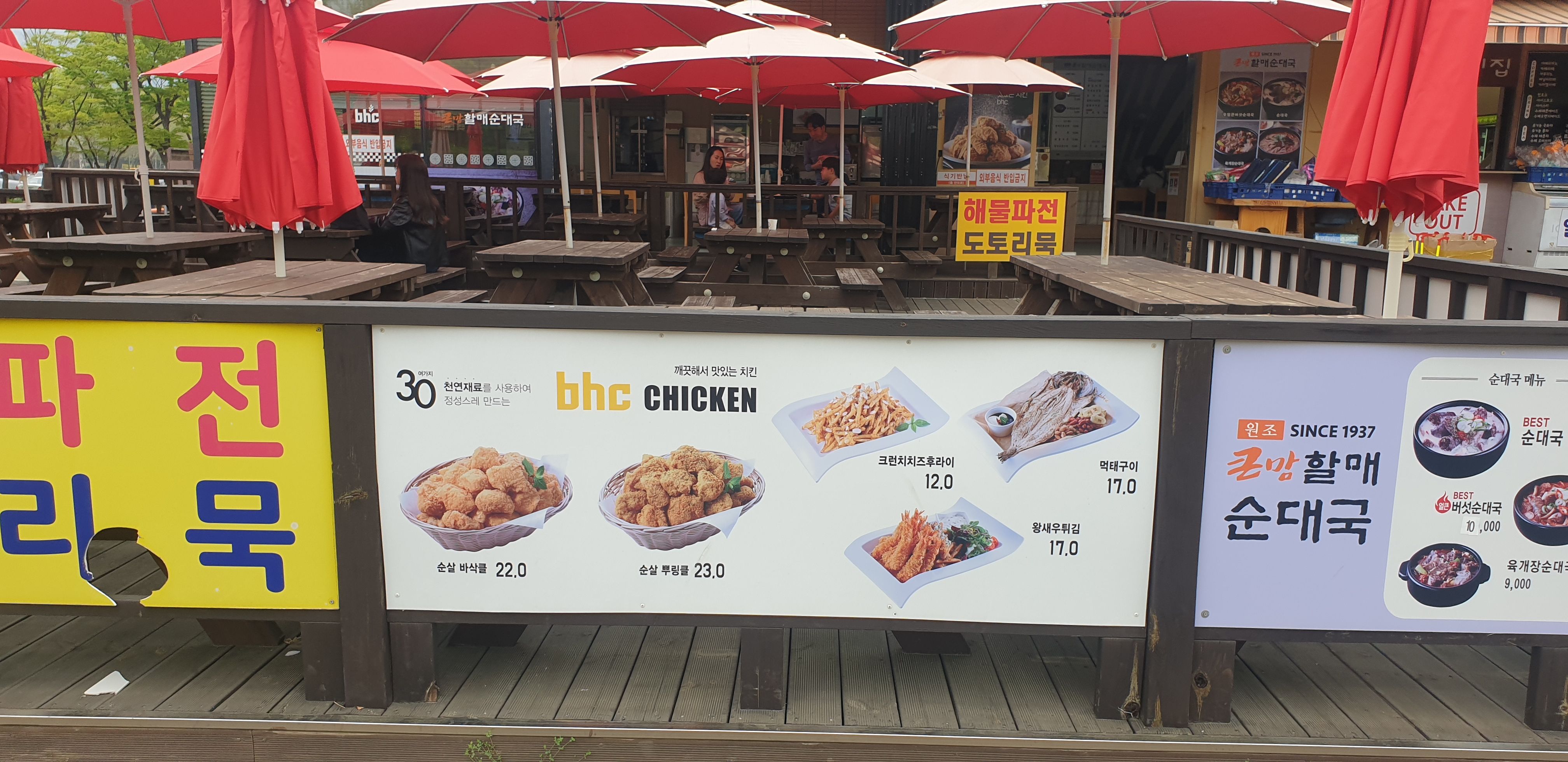 공원 입구 쪽에 (입구로 오시다가 우측) 식당이 두 군데 있습니다. 혹시 식사를 안 하고 오셨다면 이곳에서 식사를 하셔도 괜찮을 것 같습니다. 참고로 저는 도시락을 싸가거나 간단한 간식을 싸가서 식당 이용은 해보지 않았습니다. 먹을거리를 싸오셔서 호수 근처에 있는 벤치(식탁)에서 드시는 것도 좋을 것 같습니다.