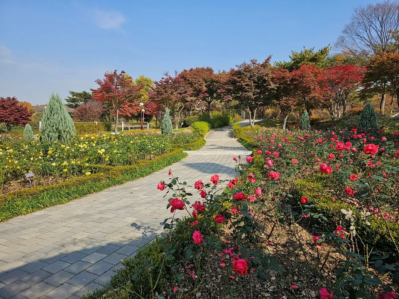 - 다채로운 장미 정원과 다양한 색상의 장미들