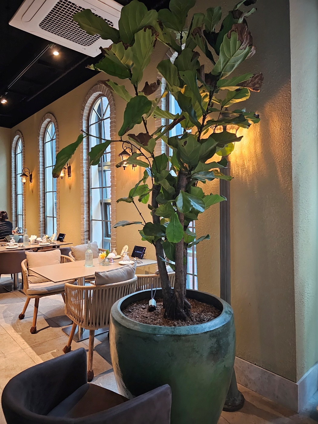 유럽풍 거리의 고풍스러운 모습의 인테리어입니다. 식물도 많고 분위기가 참 좋았습니다.