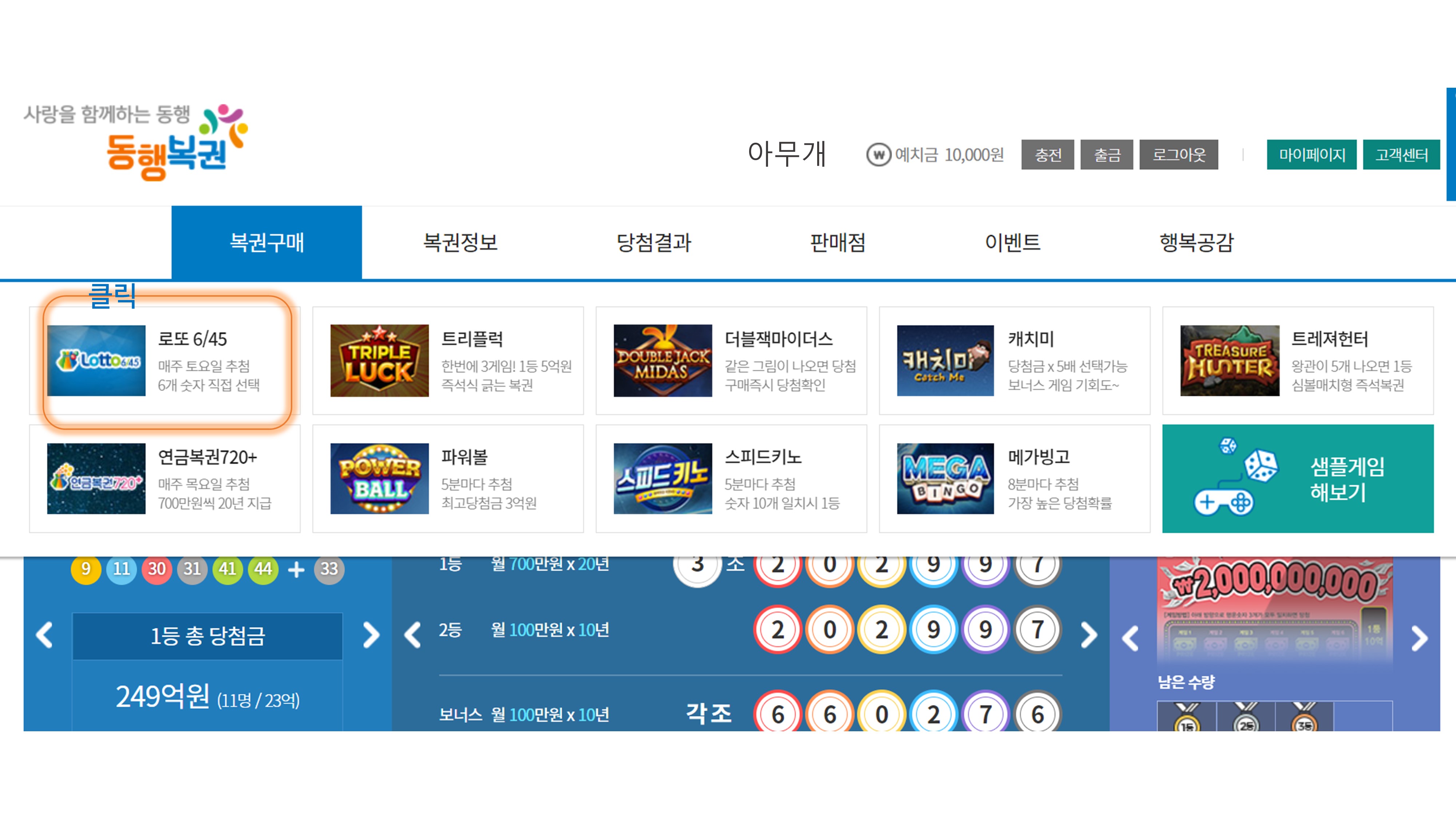 이번에는 로또복권을 구입해보겠습니다. (다른 복권도 구입해 보세요~)