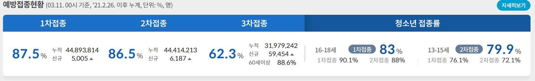 코로나19와의 전쟁이 너무 오래 지속되고 있습니다. 백신 접종도 이제 3차를 넘어 4차까지 하시는 분들도 있는데요. 오늘 기준의 백신 접종률은 2차까지는 86.5%, 3차 접종자는 62.3% 정도라고 합니다. 그동안 백신이라고 하면 한번 정도 맞으면 될 거라고 생각했는데. 3차, 4차까지 맞으라고 하니 저로서는 좀 적응이 안 되기도 합니다. 저 같은 경우는 현재 2차 접종까지만 완료했고, 접종을 한지는 90일 가까이 되고 있습니다. 3차 접종을 해야 한다는 문자가 계속 오고 있어서, 3차 접종을 꼭 해야 하는지 궁금해서 이유를 찾아보았습니다.