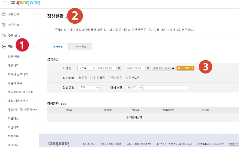쿠팡윙에서 정산 주기를 확인하고 자금을 계획한다.