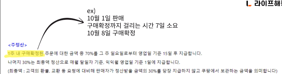 초보판매자 9월 1일 첫 주문 '주정산' -> 최소 30일 소요