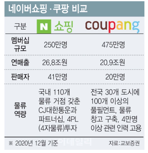 매출은 네이버가 높으나 멤버십 숫자는 쿠팡이 높음