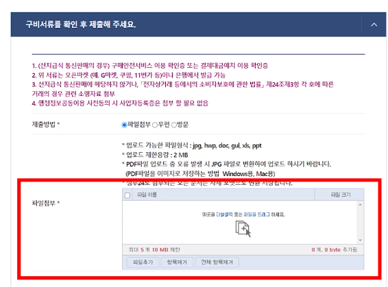 - 쿠팡윙에서 다운로드한 구매안전서비스 이용확인증을 첨부한다.