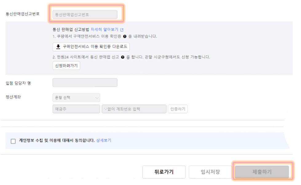 -> 쿠팡윙에 통신판매업신고번호 등록하기