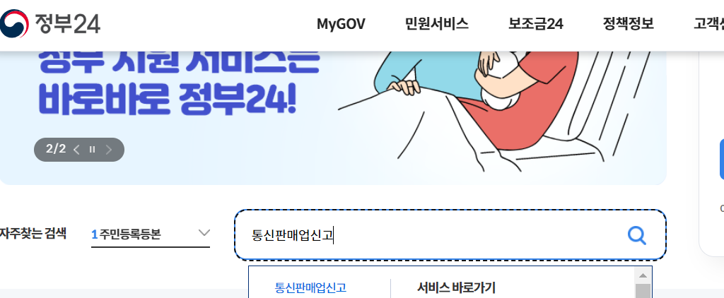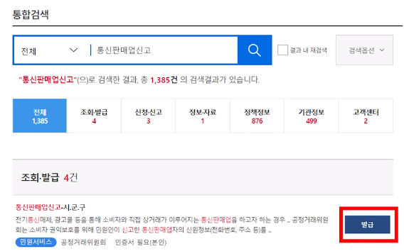 검색창에서 통신판매업신고를 검색한다.