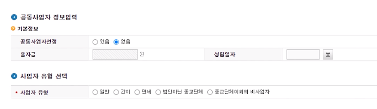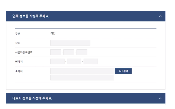 - 사업자등록증에 있는 정보를 입력한다.
