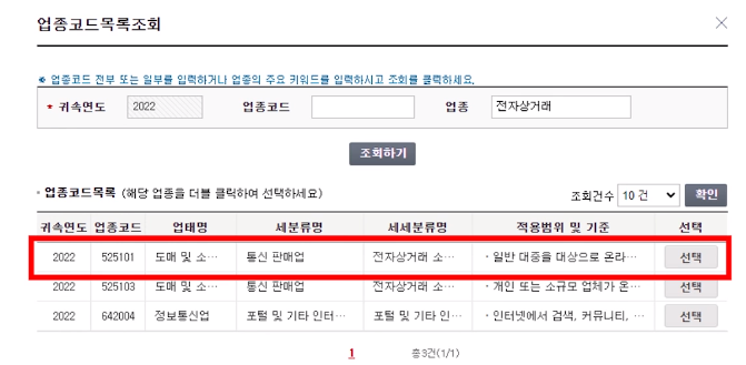 - 업종은 525101 선택함