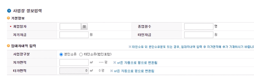 사업장과 관련된 내용을 입력한다.