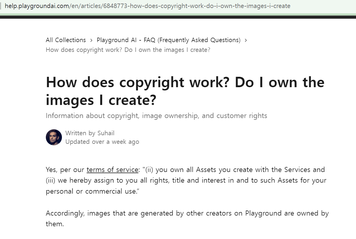 따라서 Playground에서 다른 창작자가 생성한 이미지는 그들의 소유입니다.