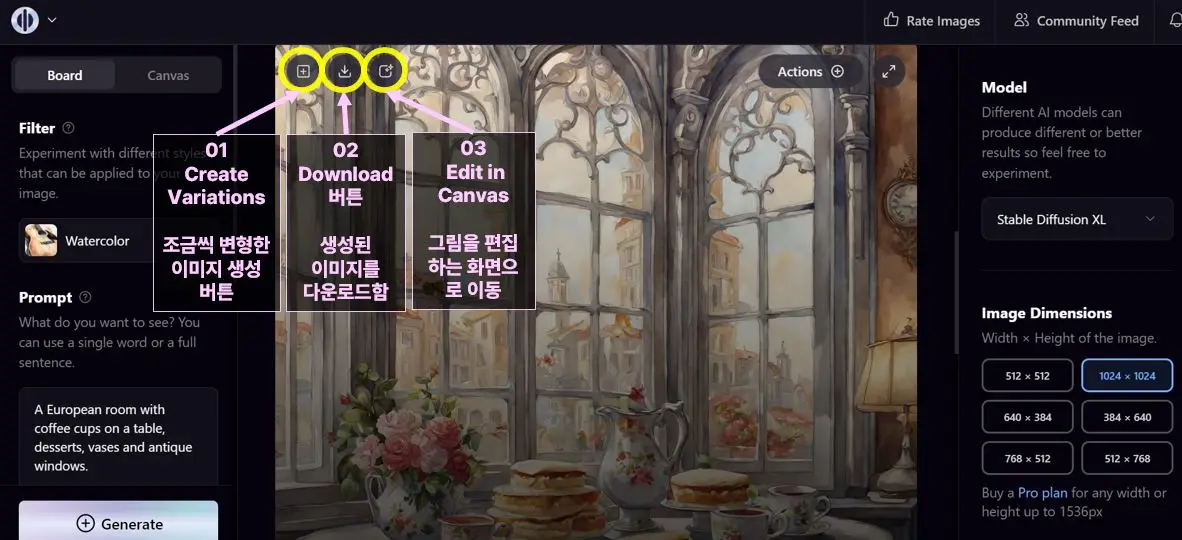 플레이그라운드의 대표적인 기능은 이미지를 생성하는 것과 이미지를 편집하는 것이 있습니다.