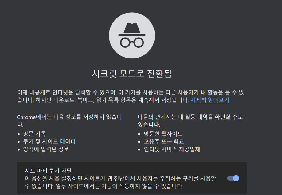 ✅ 컨트롤, 쉬프트, N키를 동시에 누르면 시크릿 모드가 됩니다.