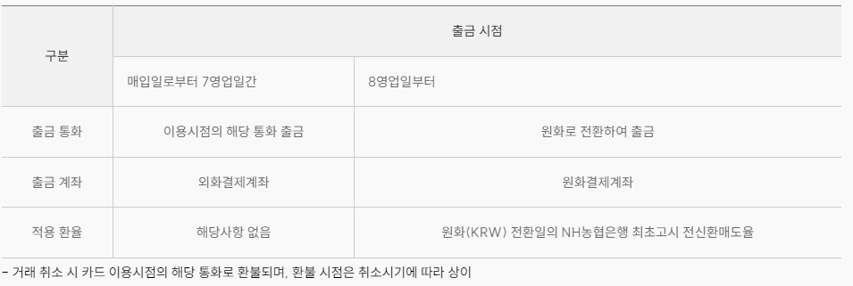 | 현지통화 구분 | 결제 및 인출 |